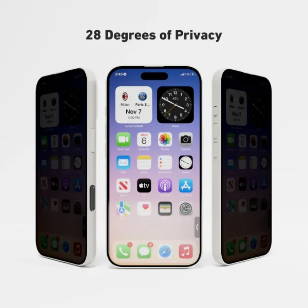 Protect your screen and your privacy with the iPhone 15 Plus Privacy Screen Protector. Engineered with 28- anti-spy angle technology, it ensures that your screen is visible only to you while appearing dark from side views – ideal for public spaces and professional use.